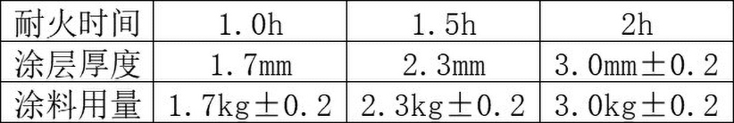 五、耐火时间和涂层厚度及涂料用量参考下表∶
