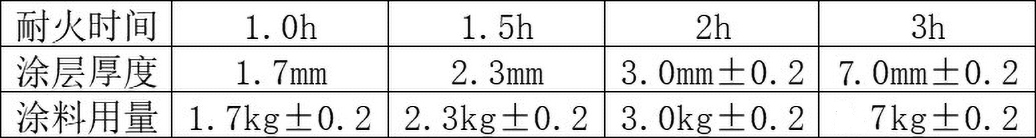 五、耐火时间和涂层厚度及涂料用量参考下表∶